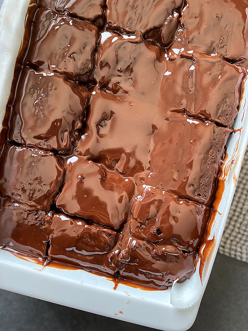 5.מערבבים עד למרקם חלק, ושופכים על העוגה.