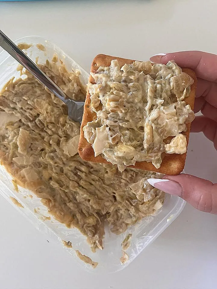 6. מוסיפים ביצה קשה מגורדת, מלח, פלפל ומיונז לפי הטעם