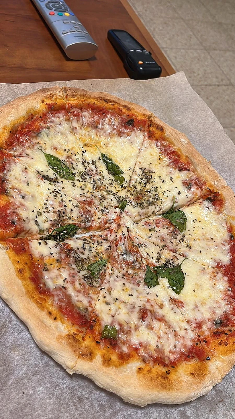 - מחזירים לתנור ושמים על גריל, ברגע שהגבינה נמסה - הפיצה מוכנה