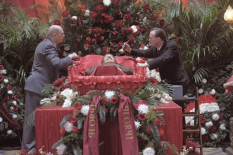 למעשה, עד מותו של סטלין, כל מה שאנחנו רואים הוא את המציאות הנוראית מוצגת בצורה קומית מבריקה - מחברי ממשל בכירים שנשארים לראות סרט עם סטלין מחשש לחייהם, דרך ניסוחים מחדש של משפטים רק כי הרודן הדגול לא אהב אותם ועד רשימות מוות מגוחכות - זה אבסורדי כל-כך עד שזה מצחיק.