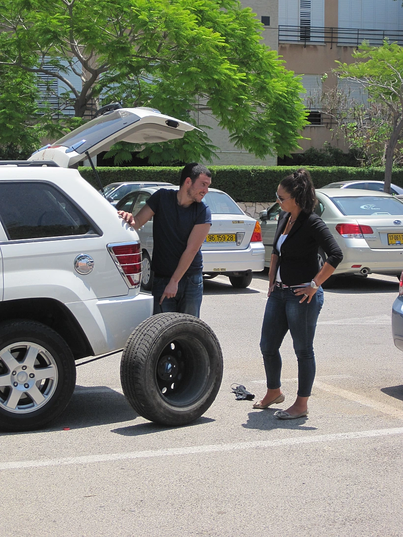 ערן טרטאקובסקי מחליף פנצ'ר | צילום: תמונות גולשים