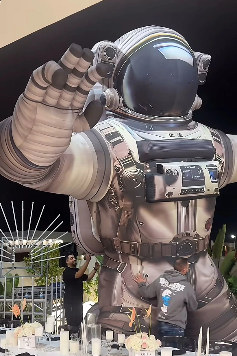הבחורה הצעירה הזמינה את כל החברים לוילה החדשה של המשפחה באשקלון, שם חיכה להם שולחן ערוך לצד ארוחת שף, לרקע עיצוב מטריף של בלונים שכלל מיצג ענק של אסטרונאוט, שהתנשא לגובה של הבית כולו. למרות שאוריה שרה חגגה יום הולדת 14 לגמרי היה נראה שזו הכנה ליום חתונה, שכן היא התעוררה משנת היופי שלה היישר לאיפור שיער מוקפד ואפילו החליפה שתי שמלות, בצבע לבן כמובן במהלך החגיגה. בכניסה למקום חיכתה למוזמנים עמדת צילום ממותגת, די ג'יי שהקפיץ את האווירה וכמובן עוגה לבנה עם השם של כלת השמחה.