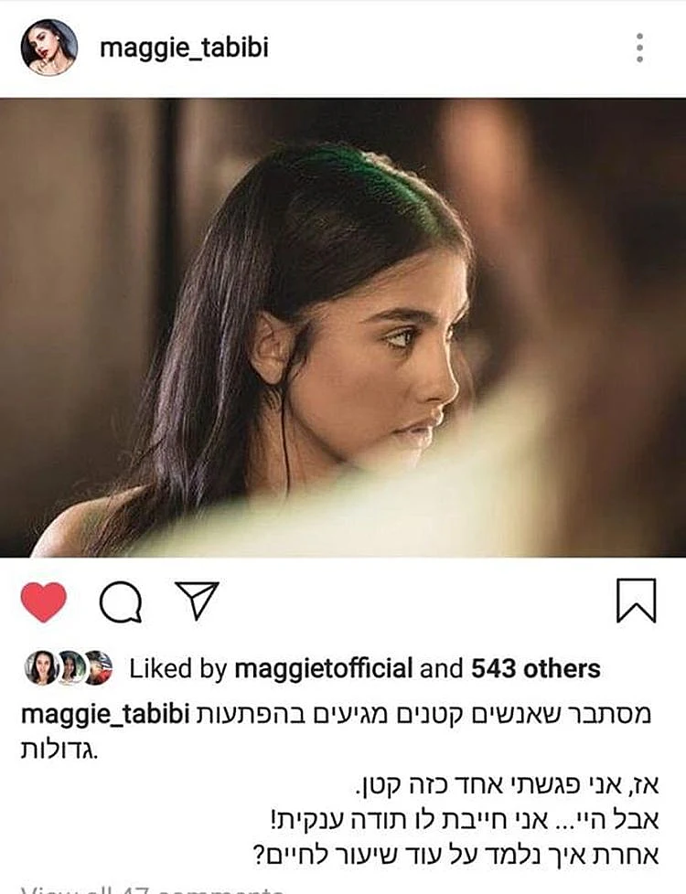 כוכבת האח הגדול, העלתה לחשבון האינסטגרם המונה 270 אלף עוקבים תמונה שלה, ולצדה כתבה את הדברים הבאים: "מסתבר שאנשים קטנים מגיעים בהפתעות גדולות. אז, אני פגשתי אחד כזה קטן. אבל היי... אני חייבת לו תודה ענקית! אחרת איך נלמד עוד שיעור לחיים?". אז לפני שאתם רצים לחפש את הפוסט באינסטגרם של טביבי, נספר כי היא כבר הספיקה למחוק אותו, אבל זה לא עזר. היה מי שראה את הפוסט וצילם. הנה הוא לפניכם.