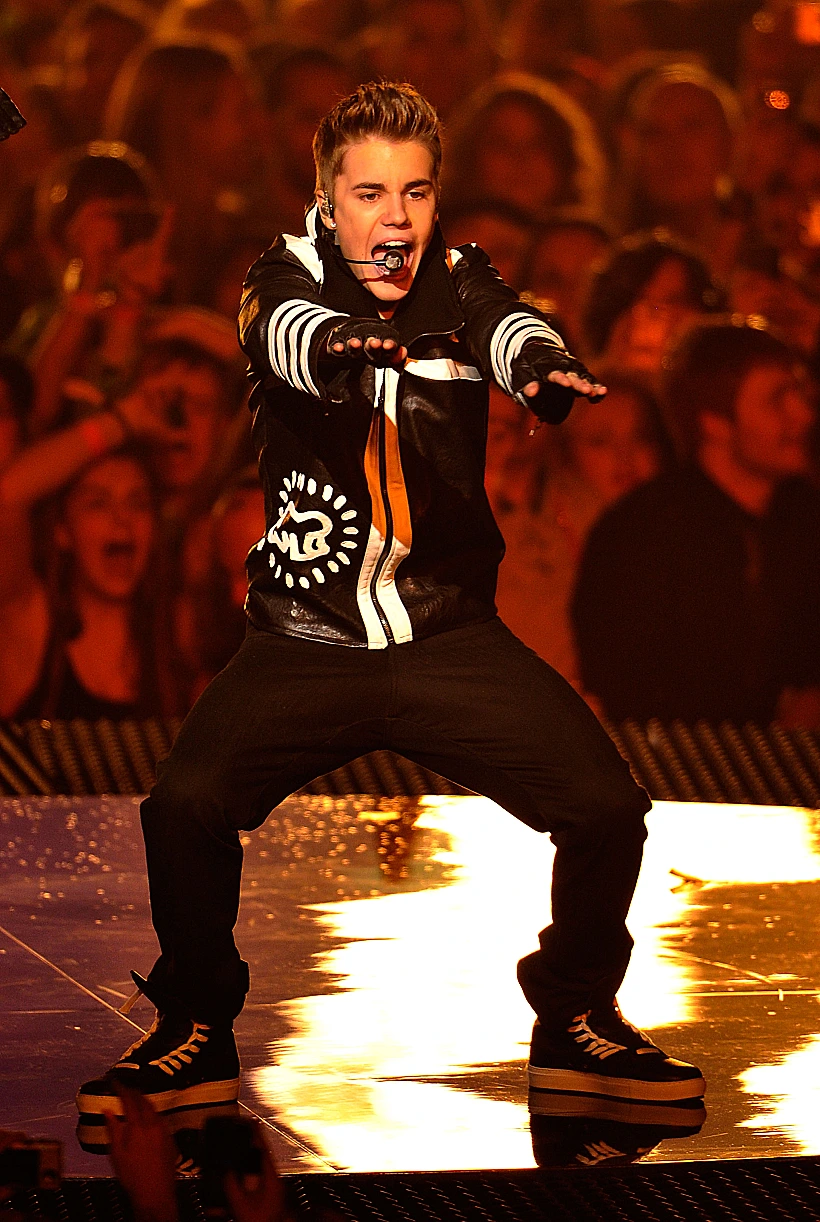הילד והשערורייה, ג'סטין ביבר, השאיר את השמועות על הילד הלא חוקי מאחור ונראה רגוע יחסית כשקיבל את תואר האמן הטוב ביותר וגם את פרס אמן הפופ הטוב של השנה. "אני בעצמי הצבעתי לקנייה ווסט", גילה ביבר לפני שהודה לאלוהים וסיים בקריצה בביטוי "אף פעם אל תגידו אף פעם" - שיר שאיתו גם הופיע בהמשך הערב לתשואות הקהל התומך וחברתו הנאמנה (כנראה) סלינה גומז.