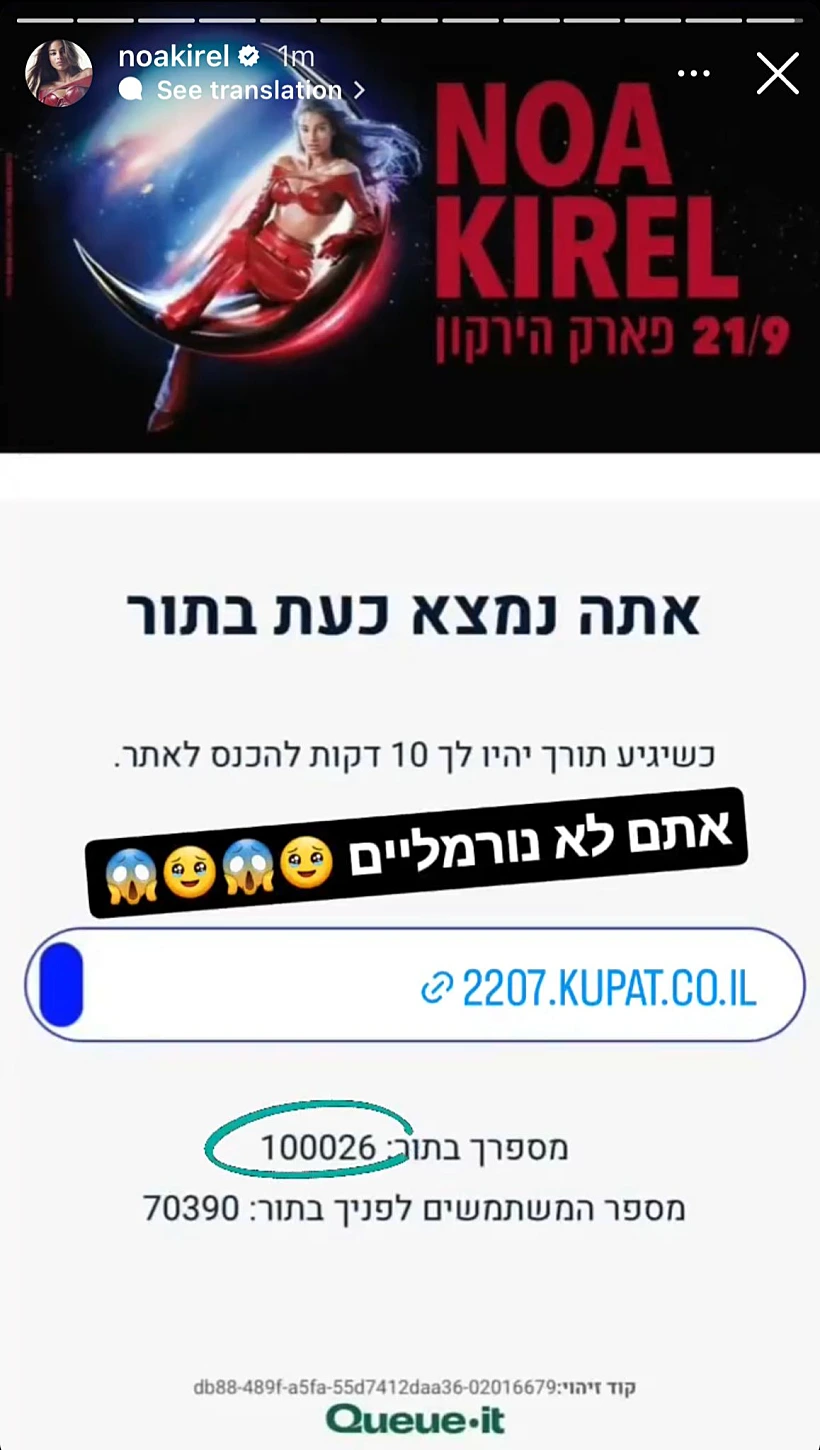 זה היה לנו ברור: שעות ספורות לאחר שנפתחו הקופות להופעה של נועה קירל בפארק הירקון - ואחרי שנרשמו עומסים כבדים באתר המכירות לאורך כל הבוקר - אנשיה של הזמרת הכריזו על סולד-אאוט. "היום נשבר שיא בישראל!", מסרו מטעמה של הניוקורן הישראלית. "תוך 4 שעות וקצת נמכרו 65 אלף כרטיסים להופעה בפארק - וזהו הישג חסר תקדים. מדובר בהיסטוריה ושיא ישראלי חדש לאמנית שמכרה את כמות הכרטיסים הגדולה ביותר, בזמן הקצר ביותר - תוך פחות מיממה להופעה בירקון".