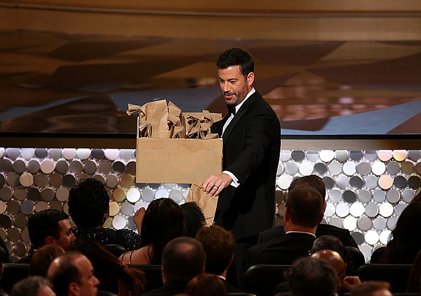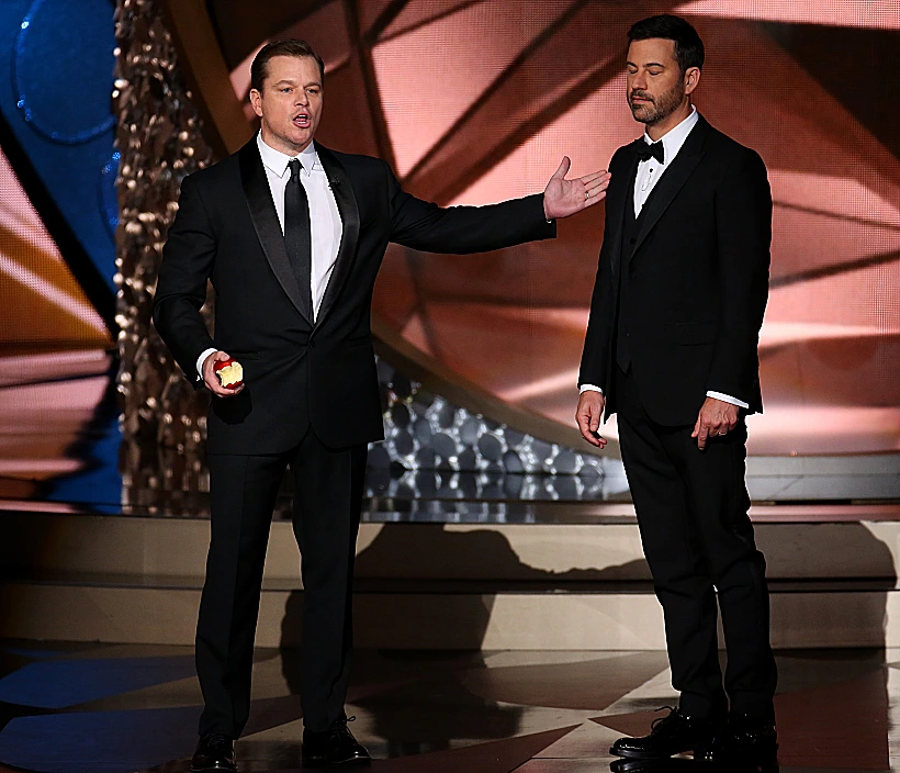 ואיך היה המנחה ג'ימי קימל? הוא צחק על ביל קוסבי, אמא שלו הכינה המון סנדוויצ'ים אותם הוא חילק לקהל יחד עם הילדים-כוכבים של הסדרה "Stranger Things" (שבטוח נזכה לראות אותם בטקס של השנה הבאה), השתתף במערכון פותח עם כמה מכוכבי הסדרות הכי טובות על המסך - ובעיקר זכה לכך שמאט דיימון יצחק על ההפסד שלו מול מיליוני צופים. נו, בקטנה.