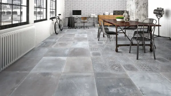 מדובר באריחי גרניט פורצלן במראה בטון שחלקם בעלי גוון אחיד וחלקם מעוטרים. העיטורים גם הם באפור, מה שגורם להם להיראות - לא להיראות. במקומות מסוימים נראים העיטורים מעט מחוקים ומהוהים, הכל כדי ליצור את המראה המשומש. האריחים כולם בגימור אנטי סליפ, מונע החלקה. גימור זה הוא גימור המיועד למקומות שעשויים להרטב לעיתים תכופות כמו חצרות עם בריכה וחדרי רחצה.