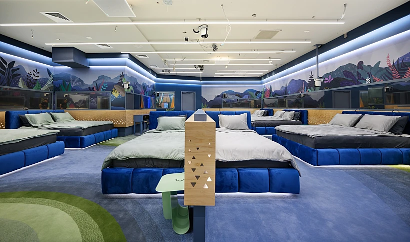 בית האח הגדול בעונה החדשה מלווה בצבע כחול עמוק כצבע מוביל של ריפודי מיטות הבית.