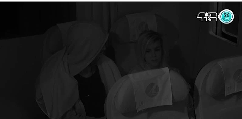 המטוס ממריא והדיירים מתרגשים. האח הגדול אומר לדיירים שהוא מכבה להם את האור כדי שיוכלו לישון ומבקש ממי שלא ישן - שיכבד את האחרים. מירב אומרת בקול: ״וואה, וואה. אחרי שבוע כזה אתה כולא אותנו בתוך מטוס 10 שעות?". הדיירים מתחילים לעכל את העובדה שהם הולכים לשבת ולא לעשות כלום 10 שעות ומתחילים לשיר שירים. כולם הולכים לישון חוץ מאדל ומירב שלא מצליחות להירדם אבל נשארות בשקט כדי לכבד את שאר הדיירים.