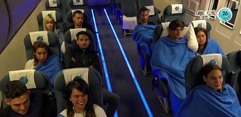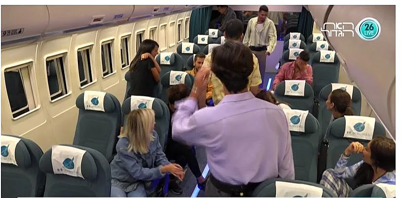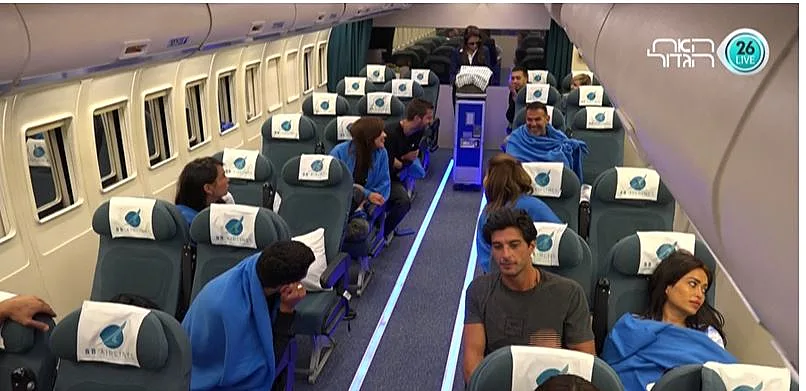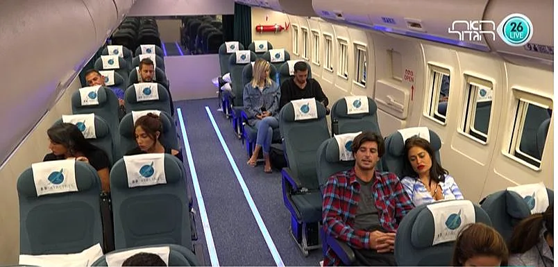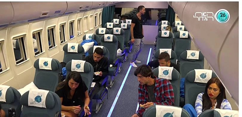 הנוסעים מתכנסים בחדר השינה, עדיין מתקשים לעכל שהם ערים ומתרגשים לקראת הטיסה הקרבה ובאה. האח הגדול קורא לדיירים ואומר להם להתכונן, ושהוא מתכוון בדקות הקרובות לקרוא להם בזוגות להתקדם לעבר הצ'ק אין. הדיירים נרגשים מאוד ומתחילים להאמין שמדובר בטיסה אמיתית. אביבית ואליאב הם הראשונים לעלות למטוס בכניסה מחכה להם דיילת דוברת אנגלית. אביבית אומרת לאליאב שידבר באנגלית כמו שהיא לימדה אותו. כולם מתיישבים במטוס והאח הגדול מבקש מכולם לא לזוז מהכיסאות מכיוון שהוא רוצה להקרין להם סרט הדרכה. ובסרט ההדרכה מופיעה להפתעת הדיירים - אורלי! שהודחה בשלב מוקדם יחסית של העונה והייתה נאהבת מאוד על הדיירים. האח הגדול מוסר לדיירים שעליהם לשבת עכשיו 10 שעות במטוס עד שינחתו בבטחה
