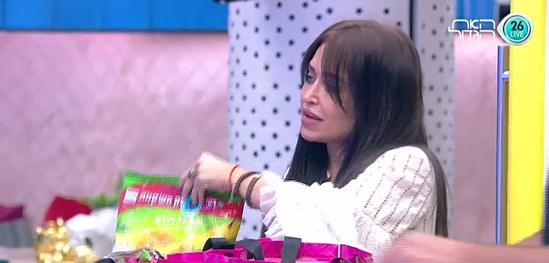 מירב מתרגשת מהמתנה ואומרת לסימה: "אני מכירה את זה! זה נפל לי מהנעל, אני מחפשת את זה חודש". לאחר מכן היא אומרת שאין לה כוחות לריב עם אלי ושהיא לא מעוניינת להיזכר כמי שרבה כל הזמן בבית.