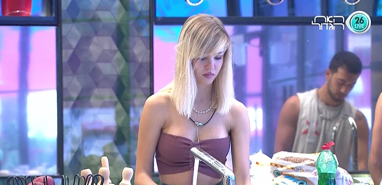 הדיירים מסיימים לאכול את ארוחת הערב. אביבית חוזרת לסורה ולא עוזרת לסימה ומירב לשטוף את הכלים ולנקות את שולחן האוכל אלא יושבת ומקריאה לאלי תהילים והלכות רמב"ם.