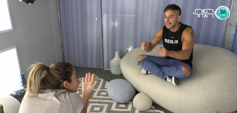 סימה ומירב מדברים על ישראל ומגי. מירב מתלוננת על כך שישראל אומר לה שהיא מלקקת לחדשים: "איך אתה אומר כזה דבר? אתה לא מכיר אותי!". אחר כך היא מספרת על העצב שנתנה למגי: "אמרתי לה ללכת לדבר עם אנשים שעושים לה פרצופים". סימה, לעומת זאת, פחות סלחנית כלפי מגי: "יש לי בעיית אמון איתה. היא עושה לי פה פרצופים כבר שלושה שבועות. אתמול דיברתי עם ישראל והיא עברה מיטה". סימה מספרת שאמרה לישראל שאיתו אין לה שום בעיה, ומבחינתה היא רוצה שהוא יזכה. בשלב זה מתחילה סימה לבכות, ומירב מעודדת אותה: "את אישה טובה, מעלפת, אני איתך באש ובמים. אני לא אתן שיפגעו בך. רק בגללך אני לא הולכת הביתה".