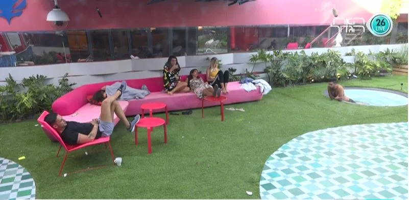 הדיירים מבלים בחצר ובבריכה. אליאב ואביבית יושבים ביחד ומדברים. "עוד כמה שעות נדע מה קורה. אבל בינתיים, בואי נחשוב על דברים טובים", אומר אליאב לאביבית והשניים מתחילים לשיר שירים ולצחוק.מירב משתפת את אדל שהיא בטוחה שהיא תודח הערב. "גם אם אגיע לגמר וגם אם לא, אני את שלי עשיתי כשהצלחתי להגיע עד לכאן", אומרת מירב בביטחון וממשיכה: "עכשיו, תנו לי לראות את הילדים שלי. התגעגעתי אליהם".