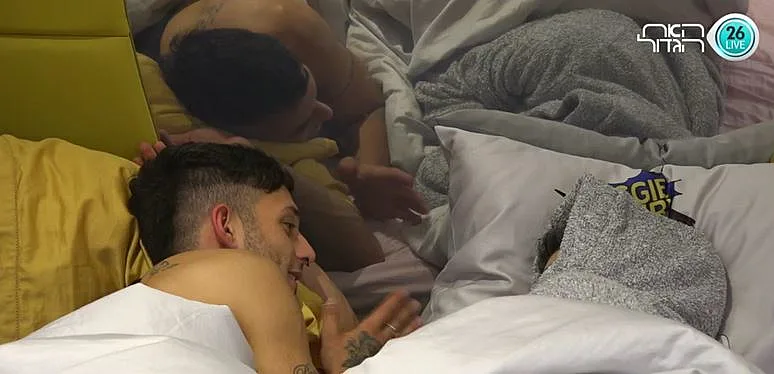 ישראל ותמי ישנים באותה המיטה ותמי מתבאסת לשמוע אותם משתובבים במיטה