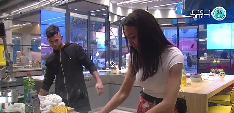 בזמן שטיפת הכלים, לירון מדבר עם שמס ג'יבריש בערבית וקורע מצחוק את דיירי הבית. ישראל נרדם בחדר השינה ומגי מנצלת את זה כדי לדבר עם לירז בשקט על אירועי הימים האחרונים.