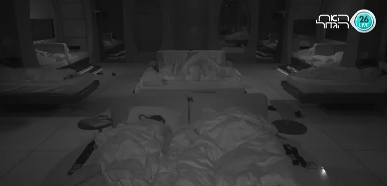 כל הדיירים בחדר השינה למעט ישראל שמכין לעצמו טוסטים במטבח. תומר ומירב ממשיכים באווירת השטות ומירב מאשימה את תומר שהוא מחביא דברים מתחת למזרון. תומר לא מפסיק לצחוק ונשבע למירב שאין לו כלום במיטה, אך מירב מתחילה לחפש. מירב אומרת לתומר שאין סיכוי שהוא לא מחביא כלום, ושתמיד הוא אוכל תפוחים. תומר ממשיך לצחוק ואומר למירב להצטרף אליו לחדר הארונות. השניים בחדר הארונות ותומר מגיע לארון שלו ומראה למירב את השלל שחבוי שם. מירב בהלם מכמות הדברים שתומר מחביא ומתחילה לאסוף דברים ולהראות לדיירים שבחדר השינה, תומר הולך אחריה ולא מפסיק לצחוק. מירב לדיירים: "תראו מה יש לתומר בארון בגדים, תפוחים, חטיפים וחטיפי בריאות, יש כאן דברים עוד ממשימת הכדורגל״. השניים לא מפסיקים לצחוק ומירב מחזירה את הכל לארון של תומר. תומר מסביר למירב: "שלא תטעי לרגע, אם הייתי שומע על דייר שרוצה משהו מהדברים האלה ואין אותו בבית הייתי ישר מביא לו. אני תמיד חושב על הכלל, אבל אני מחביא כי יש לי יצר הישרדותי". לאחר מכן כולם הולכים לישון חוץ ממריה ורועי שיוצאים אל הנסט לנהל שיחה שקטה לפני השינה.