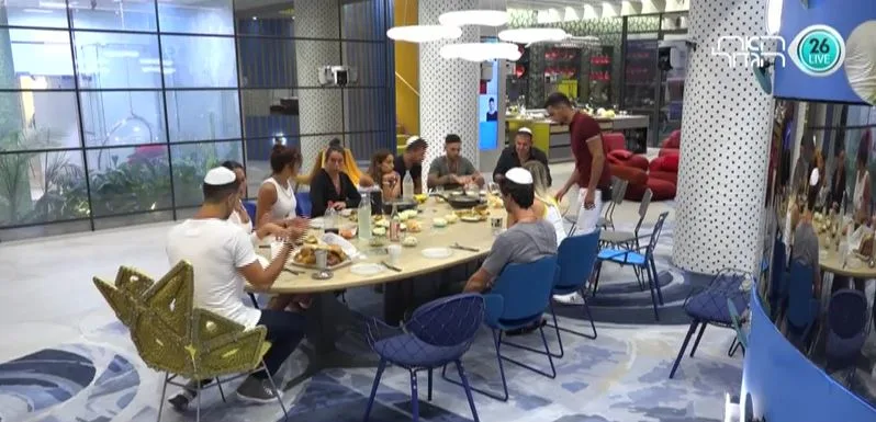 רועי, מירב, אדל, אביבית, ישראל ומושיקו משוחחים במטבח על צום תשעה באב המתקרב ועל המשמעות שלו, ומירב אומרת שאם השנה היא לא תצליח לצום בגלל ההדחה הקרובה, אז אלוהים ימחל לה על כך. מירב מביעה את חששה שהיא תתעלף באמצע משדר ההדחה עקב הצום, וטוענת שבחיים בחוץ הצום עובר לה מהר, אבל חוששת שפה בבית הצום ירגיש לה קשה כמו צום יום כיפור.