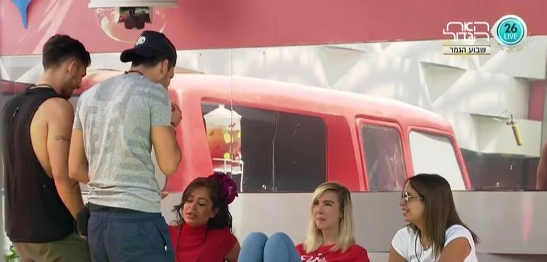מירב ואביבית יושבות על הספה בחוץ. מירב פונה לאביבית ואומרת: "כל מה שקרה פה היה מתוך סיר לחץ מטורף, מפחד. אני חושבת שאת בן אדם טוב ברמות קשות". אביבית מודה שהיה לה קשה להסתכל על מירב כי היא הרגישה עוינות ממנה. מירב מזכירה את כניסתה הראשונה של אביבית לבית, שבה היא תקפה את מירב על השימוש במילה "פלחה". אביבית מסבירה שיש לה בעיית אמון והיה לה קשה לסמוך על מירב כשהיא אמרה לה שזו לא מילה מעליבה. מירב דורשת מאביבית התנצלות על שפגעה בה, לדבריה, מול כל האומה. אביבית מתרעמת: "הרגת לי את החיים". מירב מזדעזעת: "אוי ואבוי לי אם הרגתי לך. אני אפילו מאוד מחבבת אותך ואני חושבת שאת קורעת מצחוק".