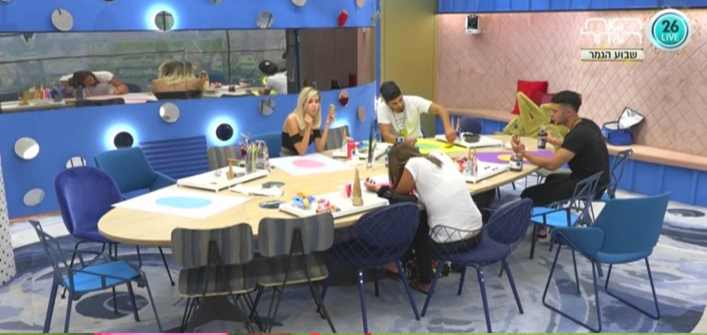 האח הגדול מכנס את הדיירים בפינת האוכל. על השולחן מונחים חפצים שונים שמאפיינים כל דייר. מריה מקבלת נוצות, אביבית נוטלה, ישראל פותחן יין, אליאב טרקטור צעצוע ומירב לקים. על הדיירים ליצור תמונת גמר נוספת שבה ישתמשו בחומרים שקיבלו. האח הגדול מקשה על המשימה, מחלק לדיירים גלידה ופוקד עליהם להשתמש ביצירה לפחות באלמנט אחד מהגלידה.