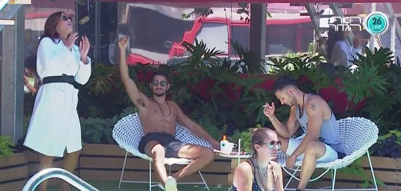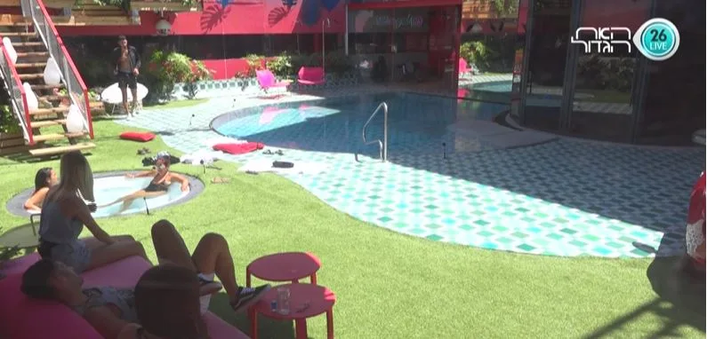 השיר "תודה" של ישי לוי מתנגן, ואביבית לא מצליחה להסתיר את רגשותיה ומתחילה לדמוע. ולאחר מכן מושמע "היום" של אהוד בנאי – כהכנה לערב הדרמטי שבו יוכרז הדייר הראשון שיקבל כרטיס לגמר הערב אחרי החדשות בערוץ 13.מירב, דניאל ואדל מעבירות את הזמן בשמש ומדברות על אופנה ובשמים. שאר הדיירים נהנים מהשקט שלפני הסערה.