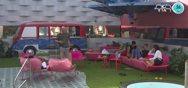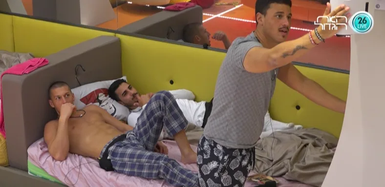 הבית ער מתמיד. סימה, מירב, לירון, אליאב, תומר ושמס בחדר השינה. שמס קוראת ללירון ומבקשת ממנו להפסיק לדבר אליה בערבית לא נכונה כי זה מזלזל בשפה הערבית ולא נראה טוב. לירון מקבל את דבריה של שמס ובצחוק עונה לה בערבית. לירון ממשיך לדבר עם המצלמות. הוא מנסה להפנט את המצלמה בזמן שכל הדיירים צופים וצוחקים. אווירת צחוק ושעשוע נחה על הדיירים והם מתחילים במלחמת כריות משוגעת. מירב לסימה: ''המון זמן כבר לא צחקתי ככה. אני בוכה''. בינתיים, שאר הדיירים יושבים בחצר ומדברים על מצב הפשיעה בספרד ובתאילנד.