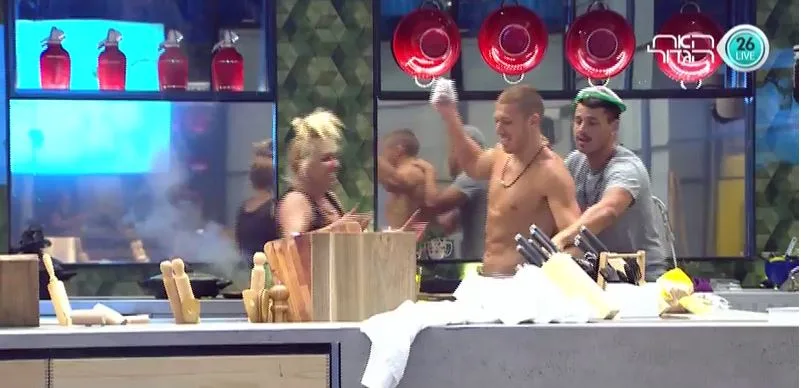 הדיירים חוגגים את ההצלחה של ישיבת התקציב בריקודים, וארוחת הצהריים מוכנה. הדיירים מתיישבים לאכול ותמי מספרת למריה את הגרסא שלה לריב שהיה בצהריים. "הבנתי שיש אנשים בבית שאוכל הוא נושא רגיש אצלם". מריה בתגובה, ביקשה ממנה לעמוד על שלה ולהיות תקיפה, אבל לא תוקפנית. החצר נסגרת והדיירים בטוחים שהאח מתכנן להם משימה נוספת. תומר מלין שוב על כך שאנשים מחביאים אוכל, לא אוכלים אותו והאוכל נזרק ומתקלקל. לירז, שנפגעה ממה שהוא אמר, קמה בהפגנתיות מהשולחן. תומר מנסה להתנצל בפניו, אך לירז דוחה את ההתנצלות שלו "הסליחה שלך לא שווה. אתה בדיחה מהלכת, תעוף לי מהעיניים". סמואל מנסה להרגיע את לירז, שהולכת לבכות מאחורי המטבח ושואלת "איך השאירו את תומר בבית?, כולו רעל".