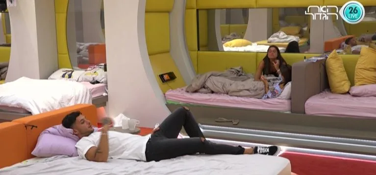 דניאל ואליאב נזכרים בימים הראשונים של עמוס בבית, שבהם העמיד פנים שהוא האקס של מירב במסגרת משימה סודית. ישראל מצטרף אליהם ומספר שהוא האמין לו ב-100%, ועל הדרך מחמיא ליכולות המשחק של מירב. לאחר מכן, בעקבות האש שפשתה בבית במהלך משחק ה״אמת או אמת״, הם נזכרים במשחק ״החבילה עוברת״ שהתסיס את הבית לפני כמה שבועות באופן דומה. מירב אומרת לישראל שרועי ומריה העבירו עונה שלמה בליהנות אחד מהשני. מרוב הנאה, מוסיפה מירב, הם לא רוצים לישון ונרדמים כמעט תמיד אחרונים.