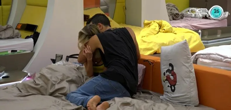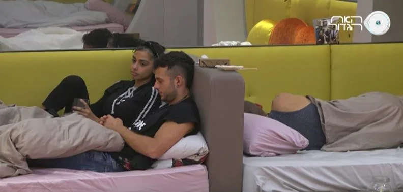 רועי ומריה שוכבים במיטה בחדר השינה ורועי משתף אותה בחששותיו לגבי הסיכוי שיודח מחר (ראשון אחרי החדשות): "אני מפחד פחד מוות שהביטחון העצמי, האגו, וההערכה העצמית שלי יתרסקו מזה. אבל אני בוחר להאמין שיהיה טוב, שמה שצריך לקרות יקרה".