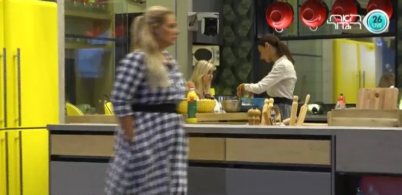 לירז מתוודה בפני סימה שהיא החביאה קמח ושוקולית, והשתיים מתבדחות על זה. סימה: ״גם את זה החבאת? יפה לך, תדעי לך שאני רואה הכל".