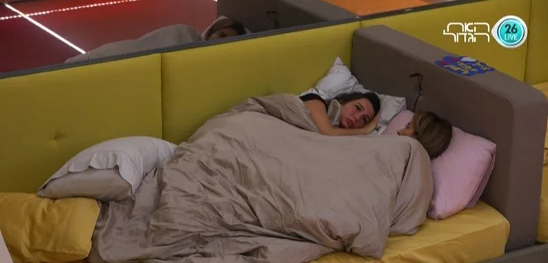 מירב שוכבת לצד אדל במיטה ומביעה את חששותיה. לטענתה, אחרי ההדחה של סימה מתבקש שהיא זו שתודח. "אני מפחדת לצאת מכאן ושיחשבו שאני בן אדם רע", היא מוסיפה ומתחילה לבכות. אדל מרגיעה אותה ואומרת לה שהקהל בבית ראה שסימה היא בן אדם טוב אבל כנראה הם לא התחברו לדרך שלה. כשמירב תוהה איך זה ייתכן שהקהל בבית בחר את הצד של אלי, אדל טוענת שהן אלו שנותנות לו את הבשר לריב והוא אוכל אותו: "הוא זורק מילה ואנחנו מנפחות את זה לריב. אנחנו לא צריכות לתת לו במה". בסופו של דבר, מרגיעה אדל, הצדק ייעשה.