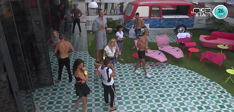 האח הגדול מנגן מוזיקה לדיירים, הם רוקדים בהנאה וקופצים לבריכה. מירב עוקצת: "אם הייתם מנקים כל יום – כל יום הייתה לכם מוזיקה".