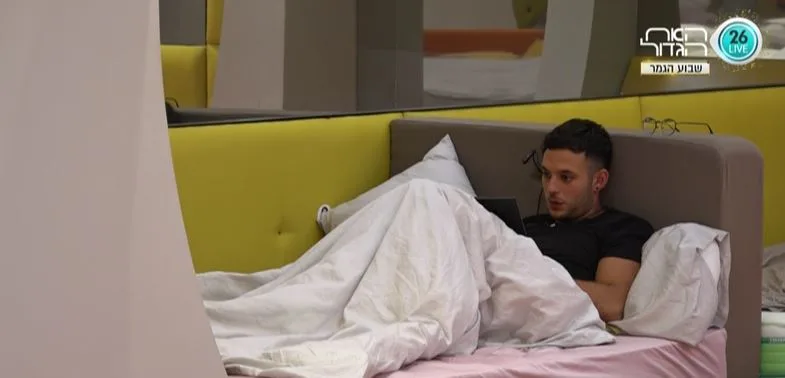 ישראל ומירב יושבים בחצר ומשוחחים על הגמר המתקרב. ישראל טוען: "מה שקרה באח הגדול, נשאר באח הגדול. התפשטנו מול כל המדינה". ומירב מחזקת אותו: "רק בושות עשיתי". מירב ממשיכה ואומרת שמרגיעה אותה המחשבה שחמישיית הגמר מתראיינת ביחד: "ככה לא כולם עליי. מקסימום ישאלו אותך שאלה, גג שתיים". ישראל דווקא מתעודד מכך שלדעתו השבוע האחרון יהיה עמוס: "איזה כיף זה כל יום לו"ז".
