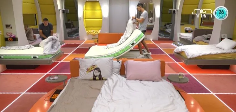 מירב נכנסת לחדר השינה והולכת לשכב במיטתה. אלי לא מבחין בכניסתה. השיחה בין אביבית, עמוס ואלי נמשכת. אלי משתף שהיה שמח אם דניאל הייתה מודחת בשבת האחרונה, אבל הוא יותר שמח על ההדחה של סימה. לטענתו, סימה הצליחה להחזיק עד כה בבית משום שעמדה להדחה רק שלוש פעמים בכל התקופה הזו. עמוס מנסה לרכך מעט את השיחה וטוען שלסימה היו גם צדדים טובים.