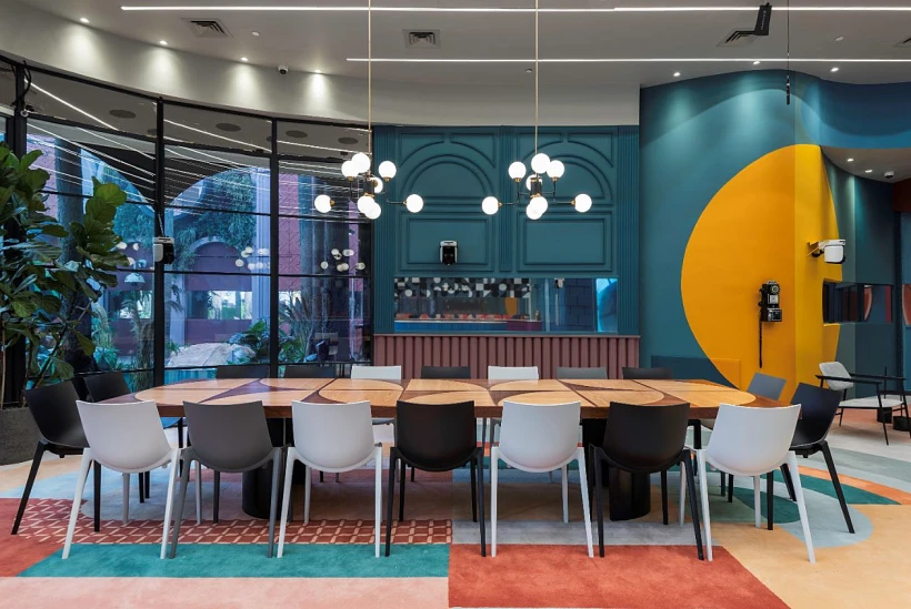 כך לצד הקרניזים, הבריקים, הפסיפסים, טלפון החוגה, הקשתות, ספת הקפיטונאז', ועוד אלמנטיים שאצר שימרי כמחווה לשנות ה-80 הוא ליהק רהיטים אייקונים שנוצרו עי מעצבי השעה. בהם כסאות ה- Zartan שבחר לחדר האוכל בעיצוב Philip Starck למותג האיטלקי Magis. כורסאות ה- DC בעיצוב Djordje Cukanovic למותג Ethnicraftאליהן שידך צמד שולחנות צד ""caliber בעיצוב Böttcher Henssler Kayser למותג הדני Wendelbo אותן מיקם בסמוך לטלפון הציבורי ועוד.