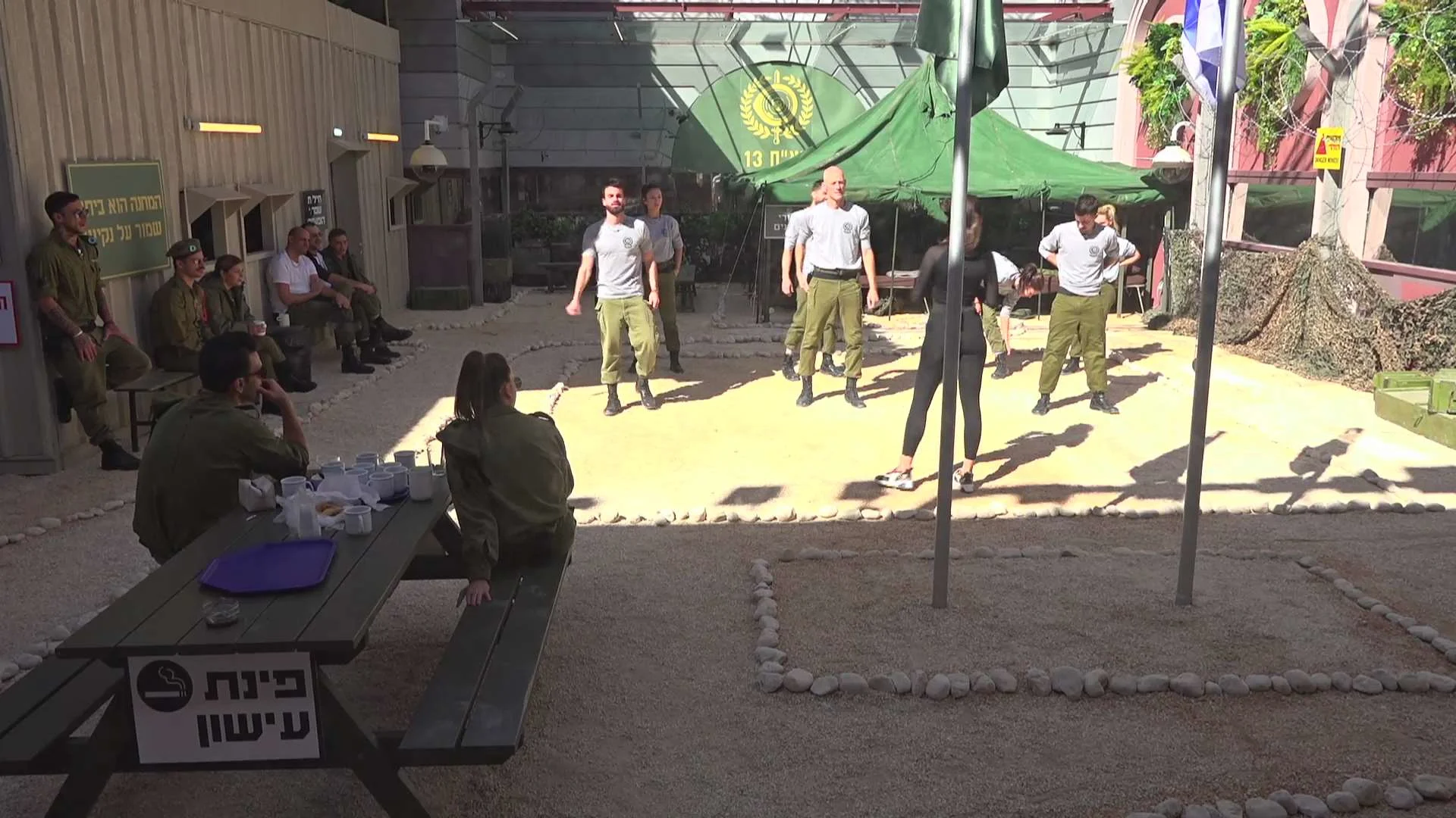 קארין המדא"גית עושה לדיירים החדשים אימון בוקר וגל המפקדת הקשוחה משחררת אותם לעלות על ב' וללכת לחדר אוכל.