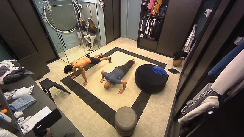 ליאור ותום מדברים על הכאבים שיש לליאור שמונעים ממנו לעשות כושר כמו שצריך. לאחר מכן הוא מצטרף לתום לשכיבות סמיכה.