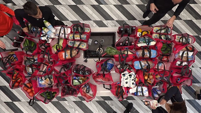 הקניות השבועיות מגיעות, והדיירים מסדרים את המצרכים במקומם.