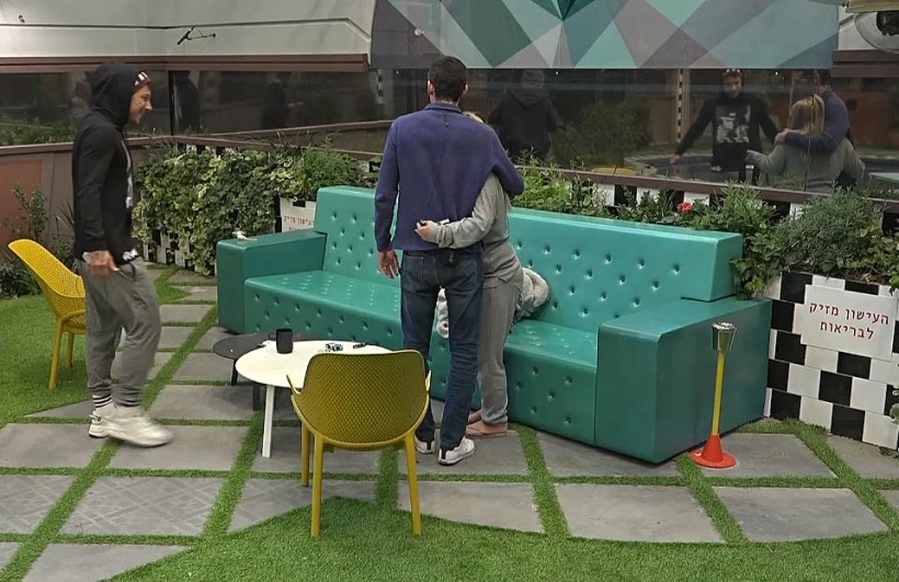 הדיירים מתאספים בסלון וממתינים להעמדה להדחה.