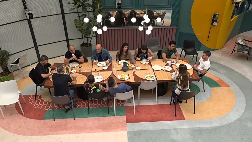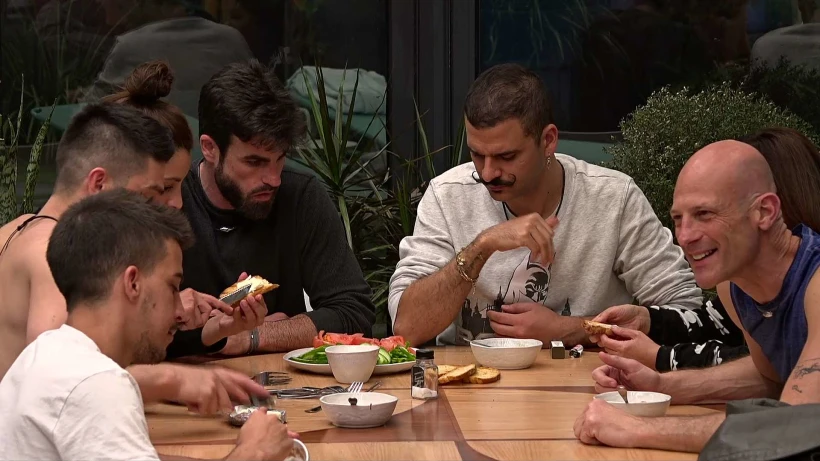 חלק מהדיירים יושבים סביב שולחן האוכל ואוכלים ארוחת צהריים מאוחרת. אורן מודה לדרור על הפתיתים שהכין ואומר: "זה כמו הפתיתים שאשתי מכינה לי, זה גורם לי להתגעגע אליה. אני יכול לבכות מזה".