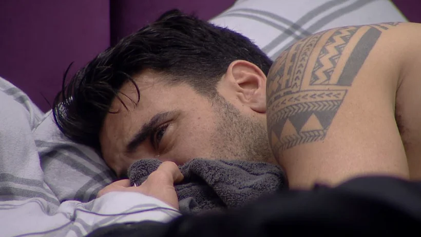 תום שוכב במיטה לבדו דקות ארוכות, נראה טרוד ומתחיל לבכות.
