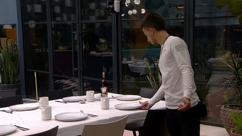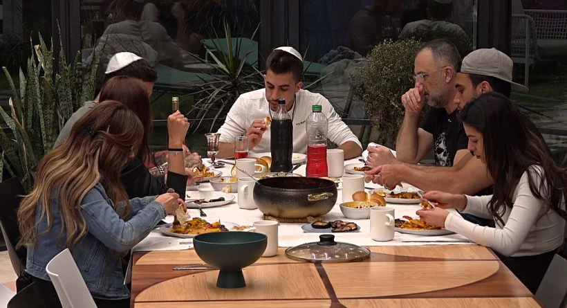 הדיירים מתיישבים לאכול ארוחת שישי אחרונה בבית האח הגדול.