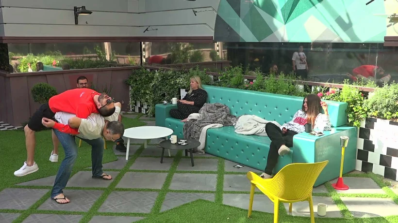 ג'וזי ואילון עורכים אימון כושר בחצר הבית, בזמן שיהודה, רונית, גל וזהבה יושבים על הספה. רונית מתבדחת עם ג'וזי: "אתה הולך לשלם ביוקר היום".