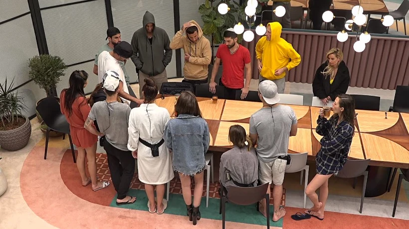 האח הגדול מכריז שיצאה השבת והדיירים עורכים הבדלה.
