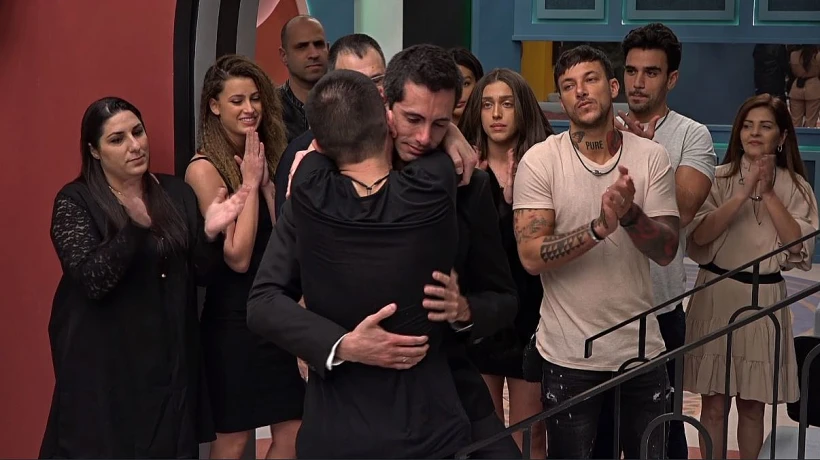 היא מפחדת שהוא יודח בהדחה הקרובה והוא מנסה להרגיע אותה.