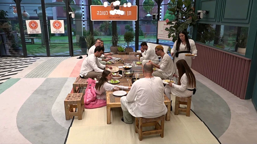 הדיירים יושבים לאכול ארוחת צהריים טבעונית משותפת. לינור מתלוננת שחסר לה בשר והדיירים מתלוננים שאין להם קפה ולכן כואב להם הראש.
