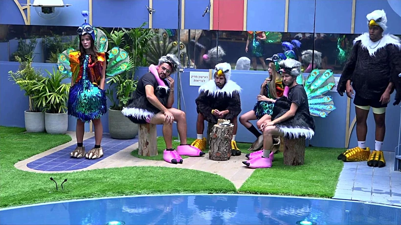 בשעות הבוקר המוקדמות הפך בית "האח" לבית הציפורים הגדול והדיירים התחלקו לשלוש קבוצות של ציפורים: נשרים, טווסים ויענים.