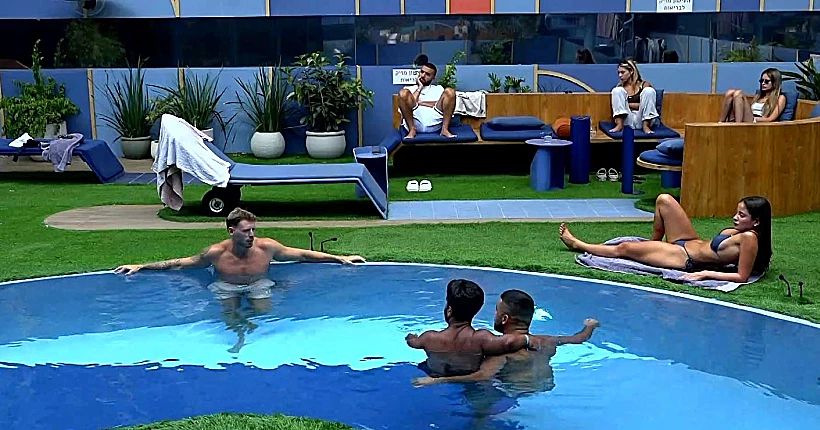 הדיירים מנצלים את השמש ואת השעות לפני ההדחה ומבלים בבריכה - ולא שוכחים למרוח קרם הגנה.