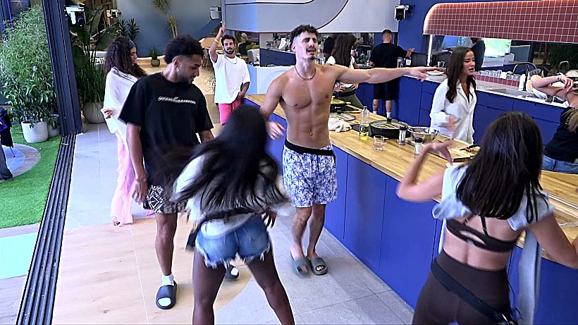 במטבח, הדיירים מנסים לרומם את מצב רוחם על ידי שירה בציבור. הם משתמשים בכלי המטבח ככלי נגינה, ולאט לאט כולם מצטרפים בשירה ובריקוד. הם מתקשים לסחוף את מיכל, עד שלבסוף היא משתכנעת ורוקדת יחד איתם.