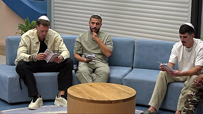 רגע לפני שהולכים לישון, הדיירים מתכנסים בסלון ומתפללים